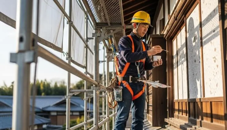 一般的な2階建て住宅の場合、軒先や屋根に近い壁の塗装など、高所での作業が必須となります。プロは安全基準に則った頑丈な足場を組み、安全帯を使用して作業を行いますが、不慣れな方が脚立や簡易な足場で行う作業は、墜落・転落といった生命に関わる重大な事故に直結する、極めて危険な行為です。安全の確保も、プロの仕事の対価に含まれているのです。