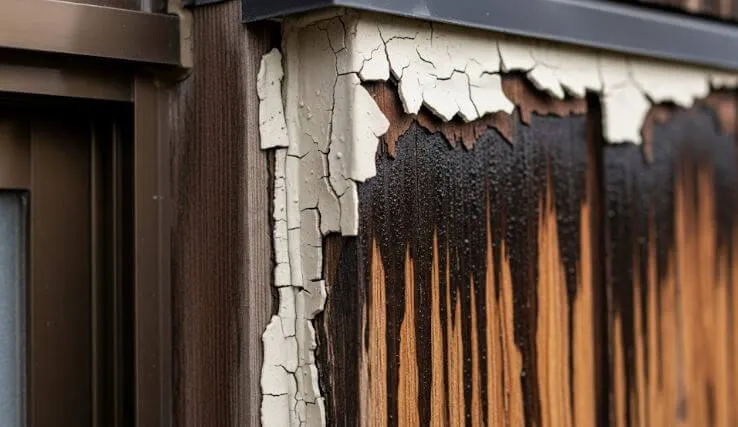 コーキングの隙間から侵入した雨水は、サイディングボードの裏側や切断面に滞留します。これにより、サイディングボード自体が水分を吸収と乾燥を繰り返し、反りや変形、表面の塗膜の剥がれなどを引き起こします。