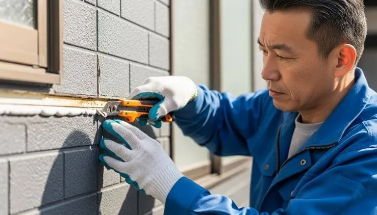 A. ホームセンターなどで材料が手に入るため、挑戦される方もいらっしゃいますが、専門家としては全くおすすめできません。高所での作業は落下の危険が伴いますし、古いコーキングの撤去が不十分だったり、接着性を高める下塗り材(プライマー)を塗り忘れたりすると、すぐに剥がれてしまい防水効果が得られません。