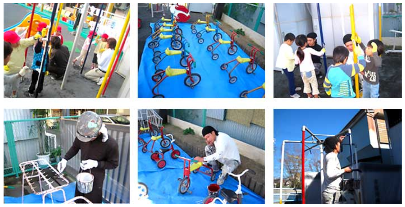 小さな手で一生懸命に刷毛を握り、自分たちがいつも使う遊具に感謝の気持ちを込めて色を塗る。その真剣な眼差しと、塗り替えられた遊具を見て輝く笑顔は、私たちの何よりの宝物です。