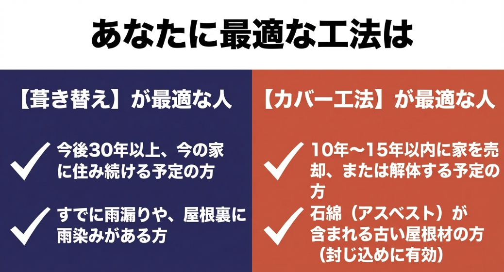 葺き替えとカバー工法、どちらを選ぶべきかについての基準