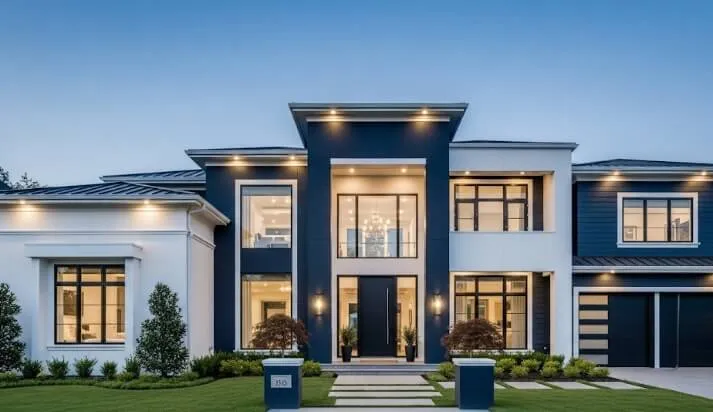 ネイビーとホワイトの配色で仕上げられた、知的でモダンな高級住宅の施工事例