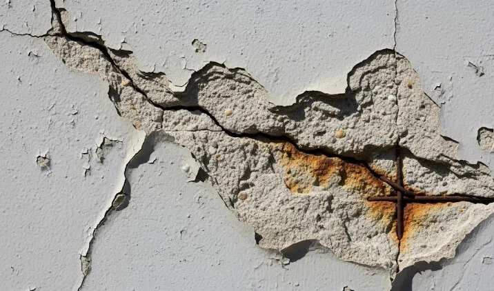 ひび割れがさらに進行すると、雨水が本格的に壁内へ浸入します。水を含んだALCパネルは、冬場の凍結と融解を繰り返すことで内部から破壊され、表面が剥がれ落ちる「爆裂」という現象を起こします。また、壁の内部にある建物を支える鉄骨にまで水が達すると、錆が発生して膨張し、内側からALCパネルを破壊してしまうこともあります。
