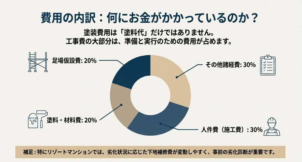 リゾートマンションの外壁塗装の費用相場と内訳について、より詳細に解説します。