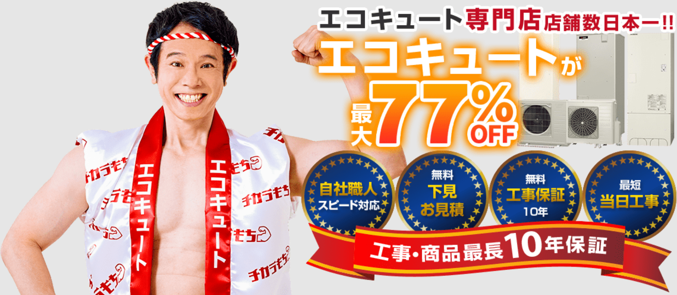 さらに、エコキュートに特化してメーカーから直接大量に仕入れることで、一台あたりの仕入れコストを抑え、その削減分をお客様の価格に還元しています。
