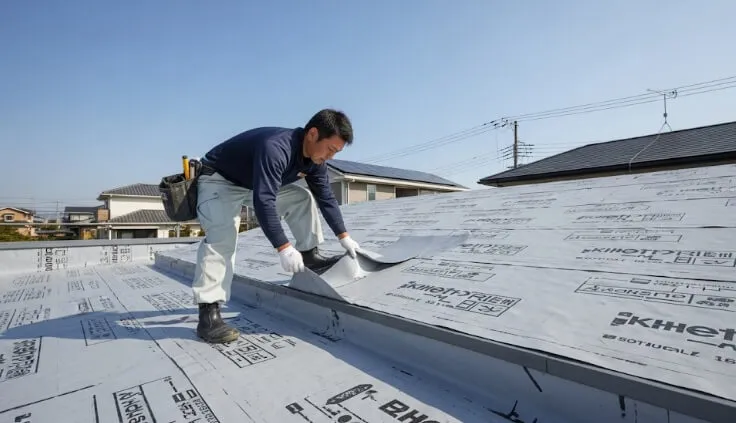 メーカーから提案される防水工事は、一般的なウレタン塗膜防水よりも、耐久性や信頼性が高いとされる「塩ビシート防水」の重ね張り(かぶせ工法)であることが多いです。