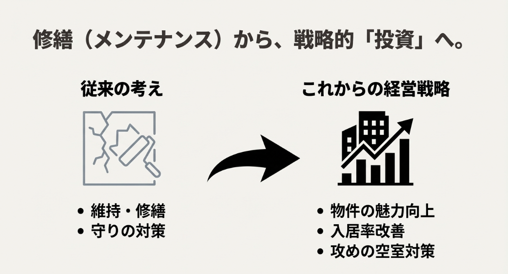 修繕から戦略的投資へ意識を変えることの重要性を示す図