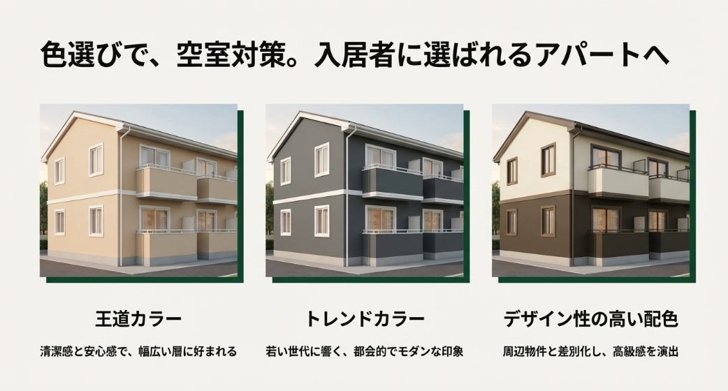 外壁の色を変えるだけで、古びたアパートが新築のように生まれ変わり、入居率が劇的に改善することも珍しくありません。
