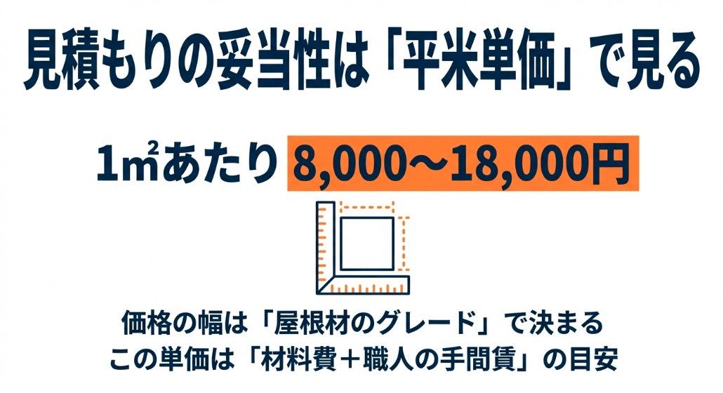 まずは、屋根リフォームを検討する上で最も基礎となる「総額」の目安と、複数の業者から見積もりを取った際に共通の比較指標となる「平米単価」について、2026年時点の最新市場価格と当社の豊富な施工実績に基づいて詳しく解説します。